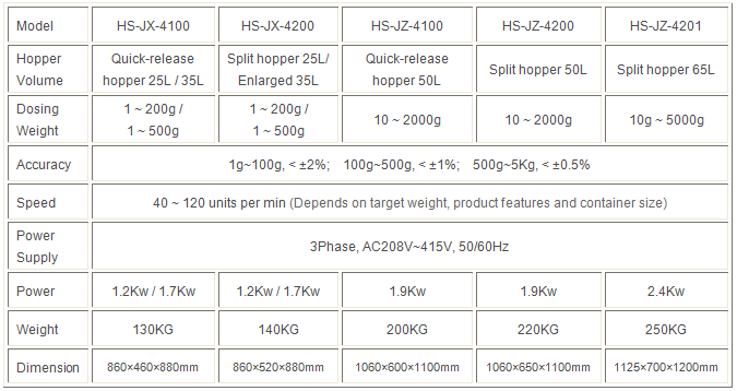 • Auger parts are replaceable for dosing various materials from superfine powder to granule.